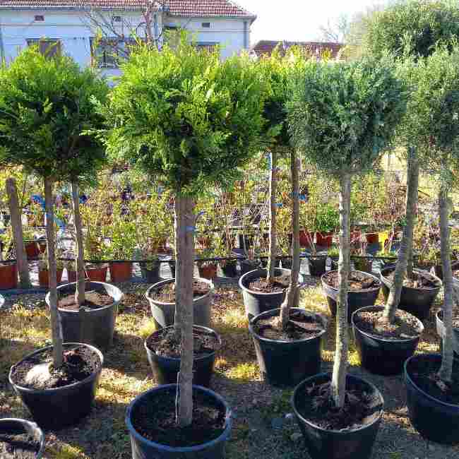U ponudi sadnice Lejlandi čempresa oblikovanog u spiralu visine oko 150 cm.