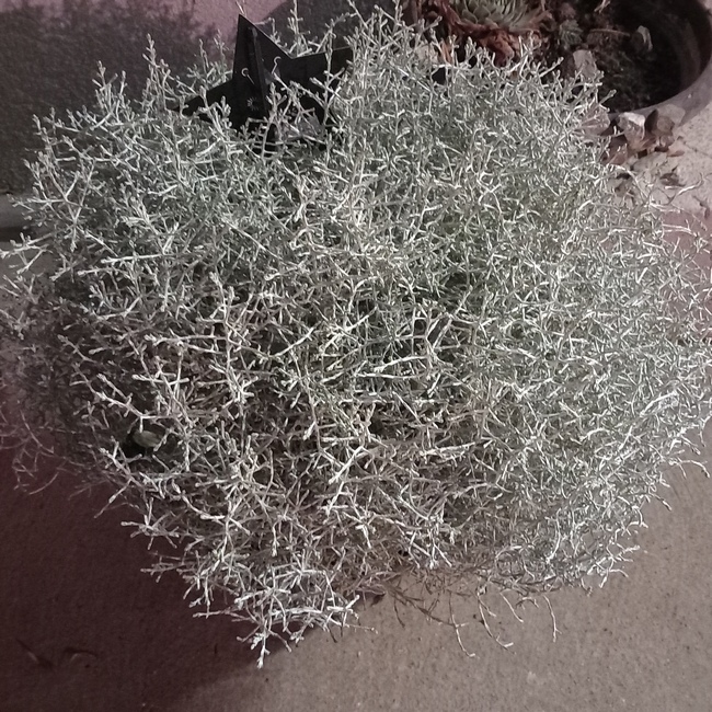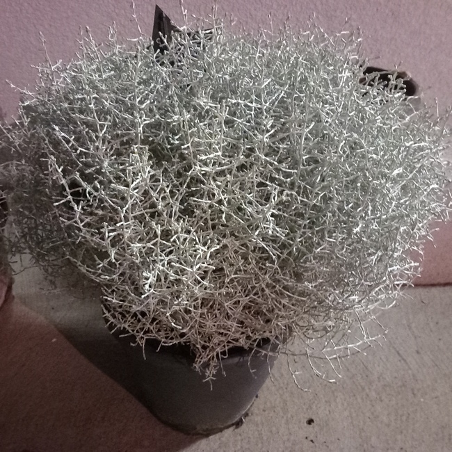Kalocefalus ili Srebrna kiša, veoma neobična biljka igličastih listova srebrno-sive boje. Ne voli temperature ispod 6 stepeni pa je treba zimi uneti. Raste u visinu do 50 cm, grančice joj padaju pa deluje kao lopta. Zbog boje listova veoma se dobro uklapa za aranžiranje.